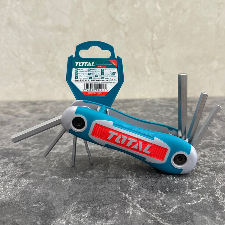 آلن چاقویی برند توتال با دارا بودن دسته فایبر نرم که نشکن می باشد و لازم به ذکر است که جنس کلیه آلن ها از آلیاژکروم وانادیوم cr-vساخته شده است که در برخورد با پیچ یا آلن های سخت کاری نیز ساییده نمی شوند.